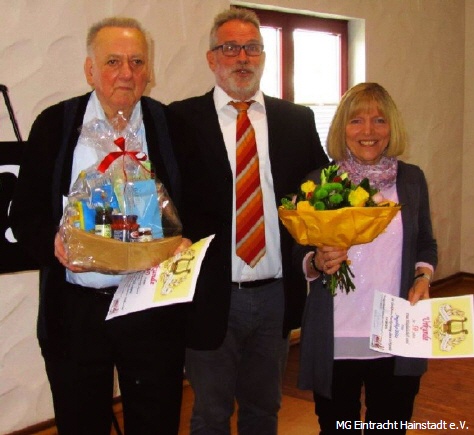 Leider hatten einige langjährige Mitglieder, die zur Ehrung eingeladen wurden, abgesagt. Roger Daus ehrte Herrn Heinz Wilhelmi für 60 Jahre Mitgliedschaft und Frau Angelika Blitz für 50 Jahre bei der MGE. Die weiteren zu ehrenden Mitglieder waren Franz Rotter und Kurt Winter für jeweils 70 Jahre Mitgliedschaft, Bernd Dassinger und Olaf Heineck für 40 Jahre sowie Melanie Dauth und Marcel Kempf für 25 Jahre. Diese Ehrungen werden in Kürze nachgeholt.